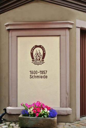 Die verschiedenen Handwerkerwappen wurden mit der Sgraffitotechnik an die jeweiligen Hausfassaden angebracht.